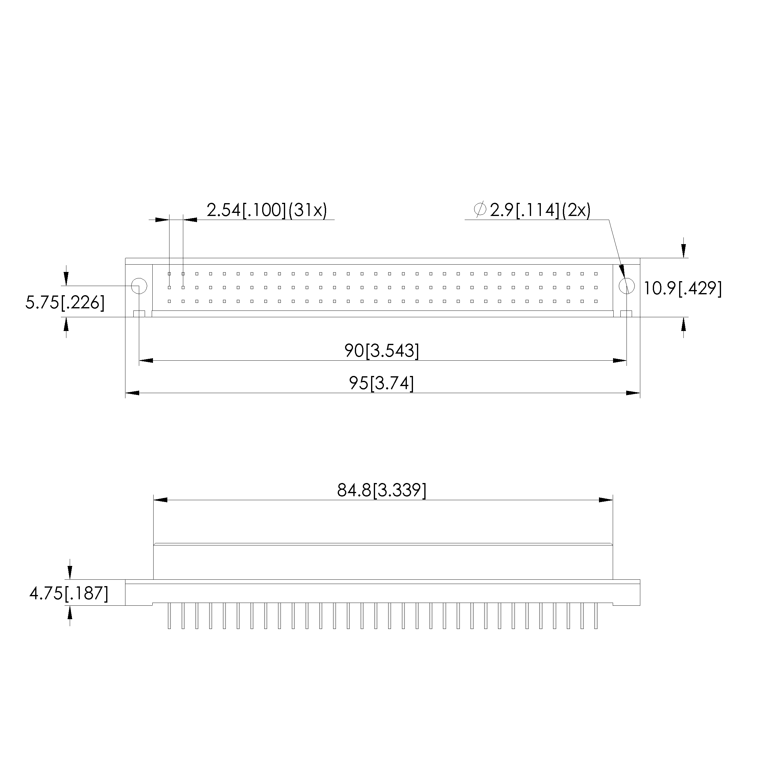 • Outer dimensionS (WxDxH): 95 x 10.9 x 15.8 mm [3.74 x .429 x .622 in]