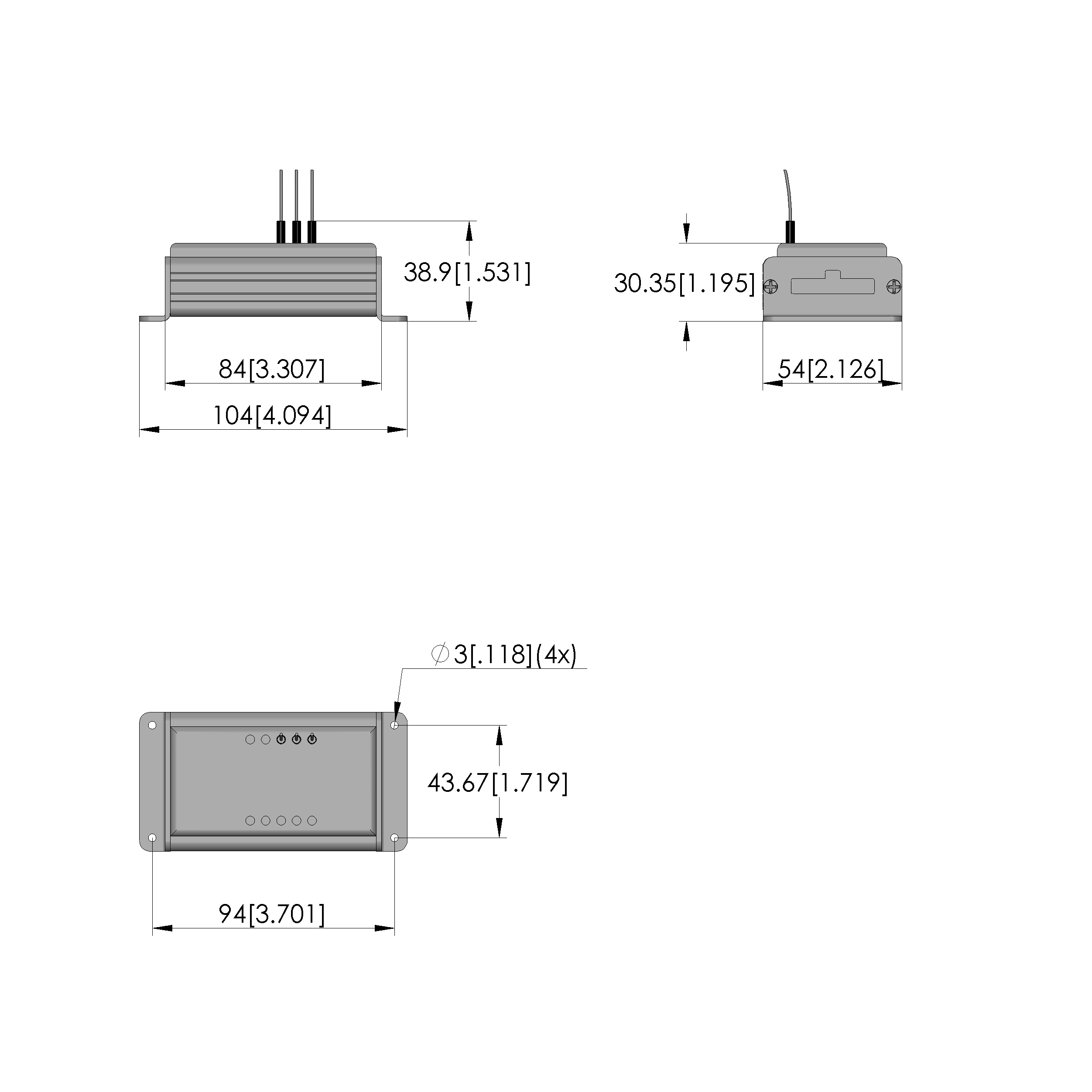- Dimensiones exteriores (AnxPxAl): 104 x 54 x 39 mm