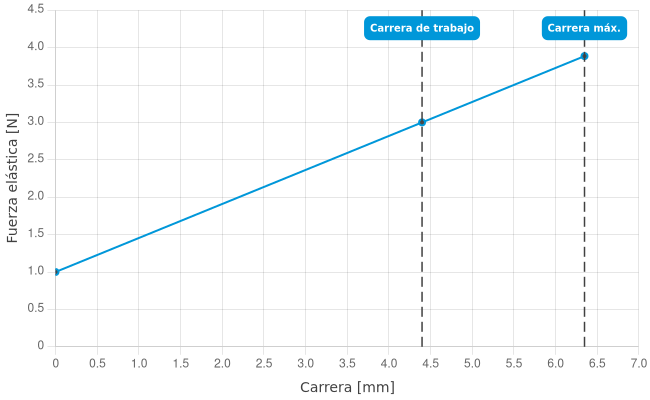 - Fuerza de resorte durante la carrera de trabajo: 3 N