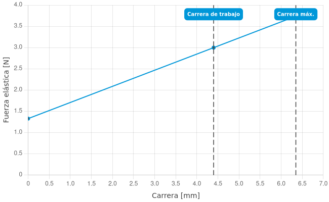 - Fuerza de resorte durante la carrera de trabajo: 3 N