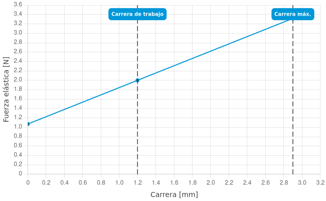 - Fuerza de resorte durante la carrera de trabajo: 2 N