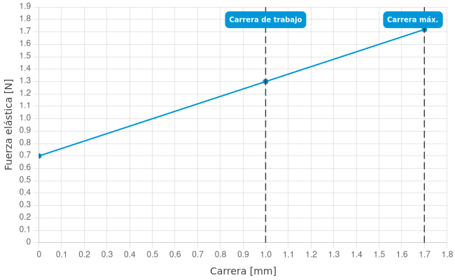 | Fuerza de resorte durante la carrera de trabajo: | 1,3 N |