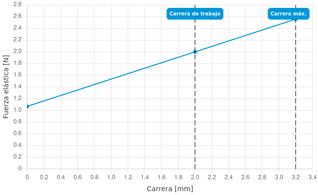 - Fuerza de resorte durante la carrera de trabajo: 2 N