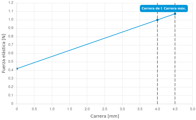 - Fuerza de resorte durante la carrera de trabajo: 1 N