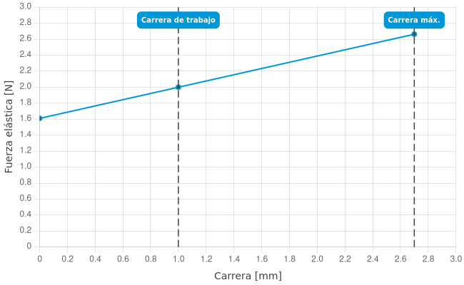 | Fuerza de resorte durante la carrera de trabajo: | 2 N |