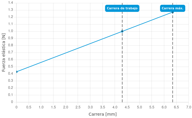 • Fuerza de resorte durante la carrera de trabajo: 1 N
