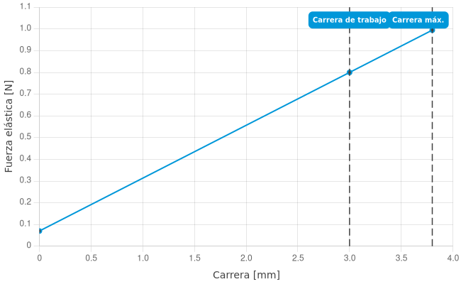• Fuerza de resorte durante la carrera de trabajo: 0,8 N