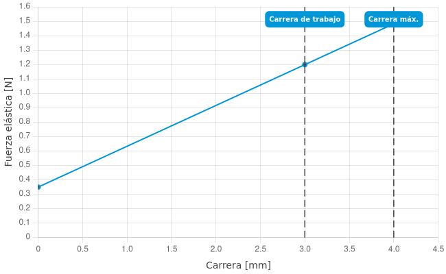 | Fuerza de resorte durante la carrera de trabajo: | 1,2 N |