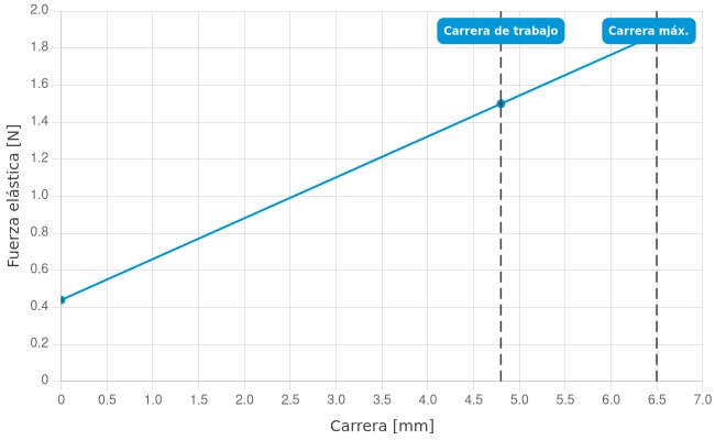 - Fuerza de resorte durante la carrera de trabajo: 1,5 N