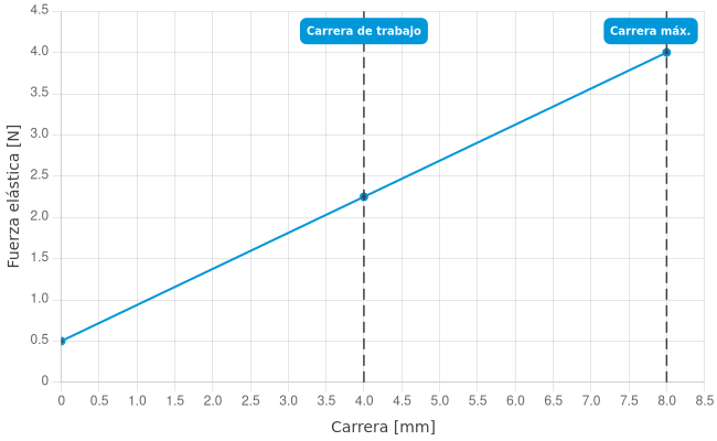 - Fuerza de resorte durante la carrera de trabajo: 2,25 N