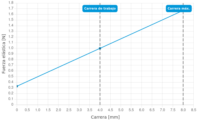 - Fuerza de resorte durante la carrera de trabajo: 1 N