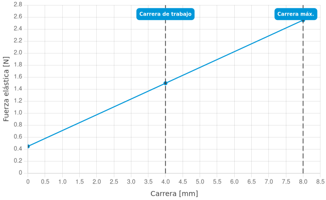 - Fuerza de resorte durante la carrera de trabajo: 1,5 N