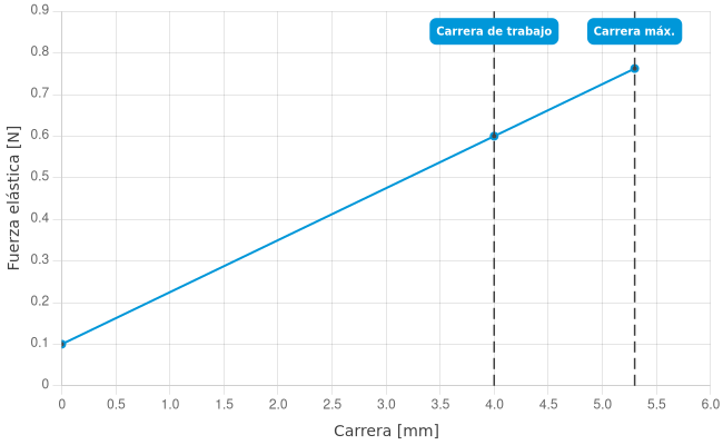 | Fuerza de resorte durante la carrera de trabajo: | 0,6 N |