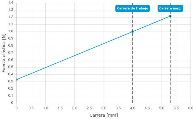 - Fuerza de resorte durante la carrera de trabajo: 1 N