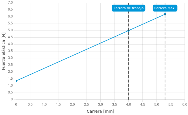 - Fuerza de resorte durante la carrera de trabajo: 5 N