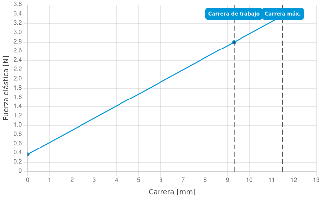| Fuerza de resorte durante la carrera de trabajo: | 2,8 N |