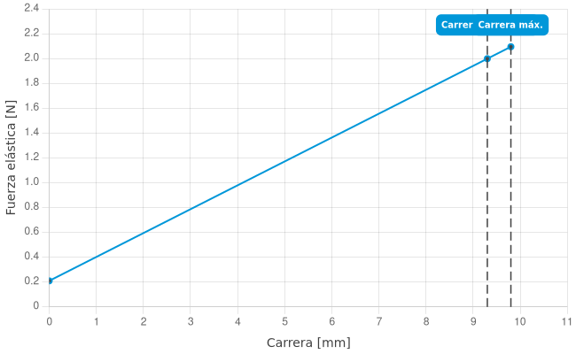 - Fuerza de resorte durante la carrera de trabajo: 2 N