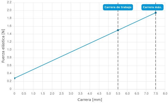 • Fuerza de resorte durante la carrera de trabajo: 1,5 N