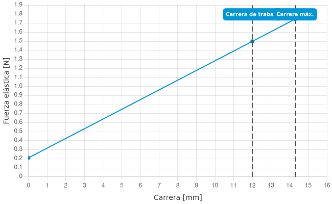 - Fuerza de resorte durante la carrera de trabajo: 1,5 N
