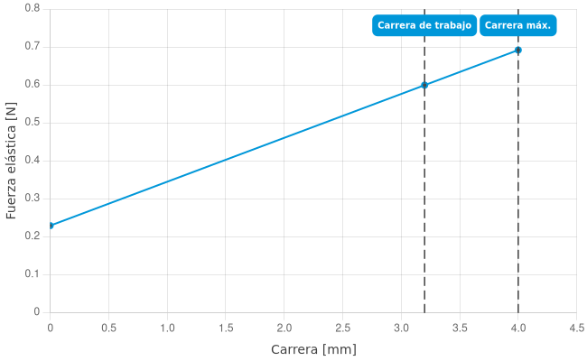| Fuerza de resorte durante la carrera de trabajo: | 0,6 N |