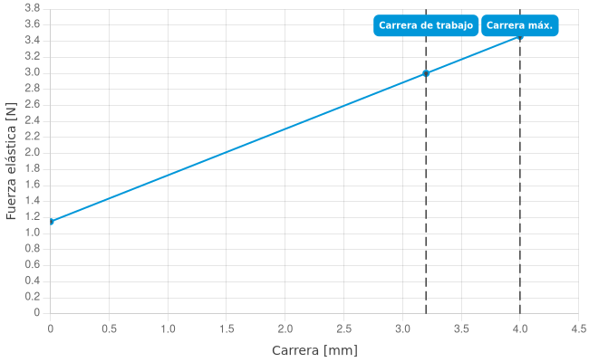 - Fuerza de resorte durante la carrera de trabajo: 3 N