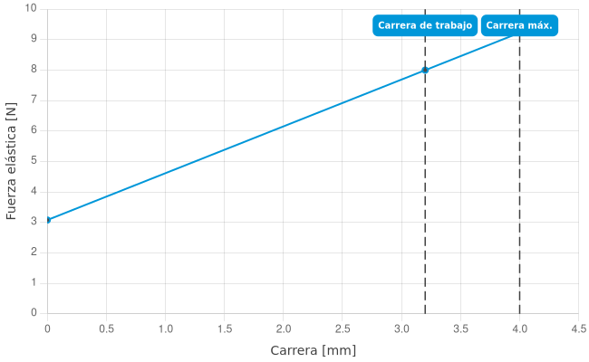 | Fuerza de resorte durante la carrera de trabajo: | 8 N |