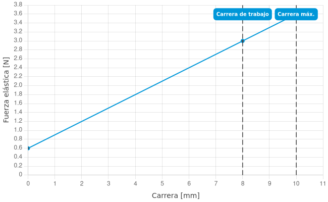 - Fuerza de resorte durante la carrera de trabajo: 3 N