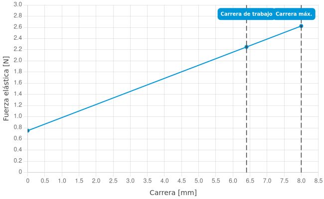- Fuerza de resorte durante la carrera de trabajo: 2,25 N