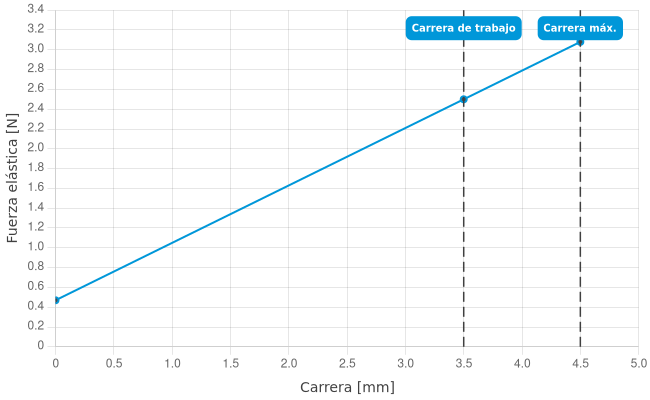 | Fuerza de resorte durante la carrera de trabajo: | 2,5 N |