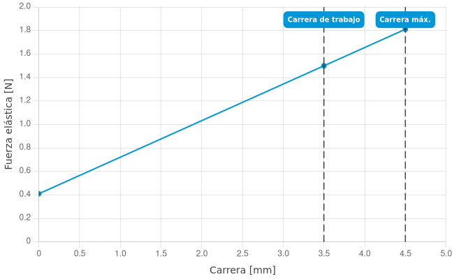 - Fuerza de resorte durante la carrera de trabajo: 1,5 N