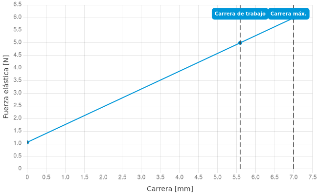 - Fuerza de resorte durante la carrera de trabajo: 5 N