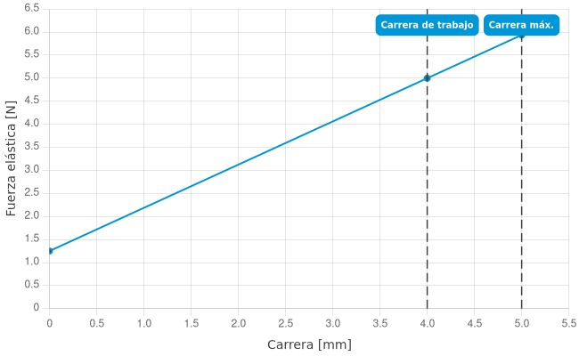 | Fuerza de resorte durante la carrera de trabajo: | 5 N |
