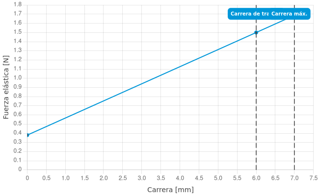 | Fuerza de resorte durante la carrera de trabajo: | 1,5 N |