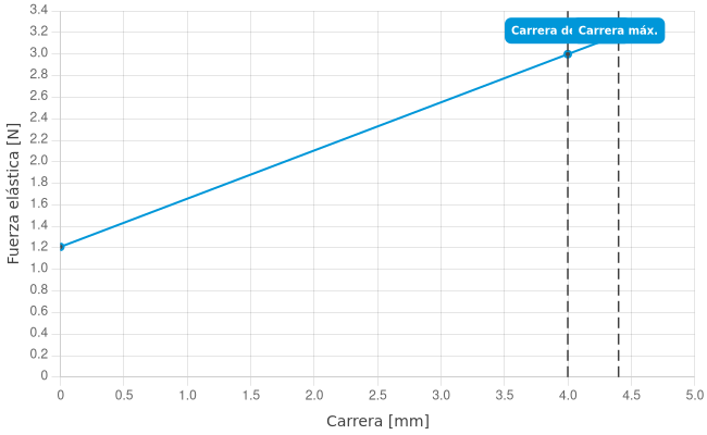 - Fuerza de resorte durante la carrera de trabajo: 3 N