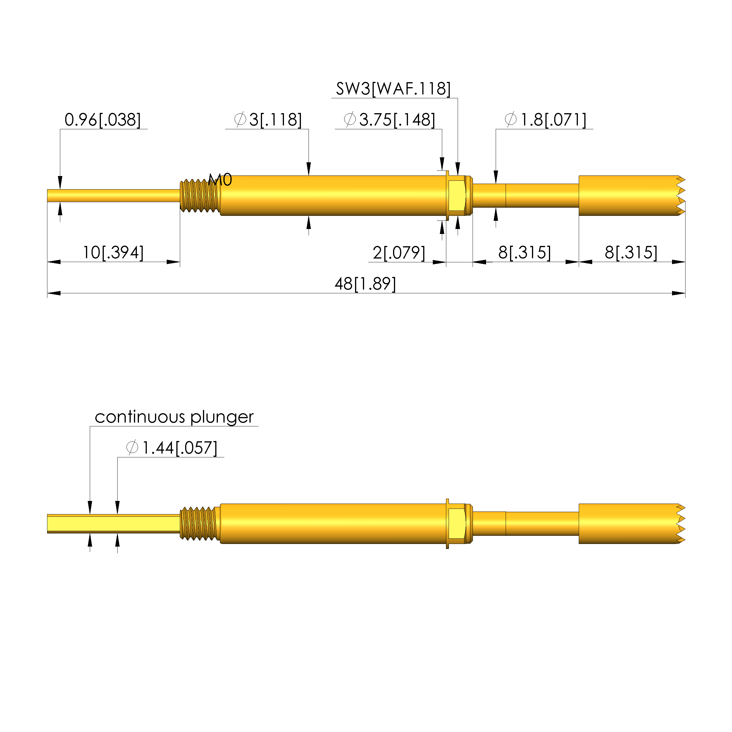 • Pistón continuo: ø1,44 x 0,95 x 10,0