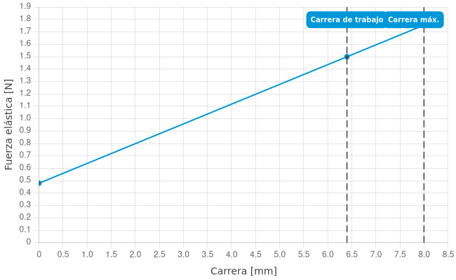 • Fuerza de resorte durante la carrera de trabajo: 1,5 N