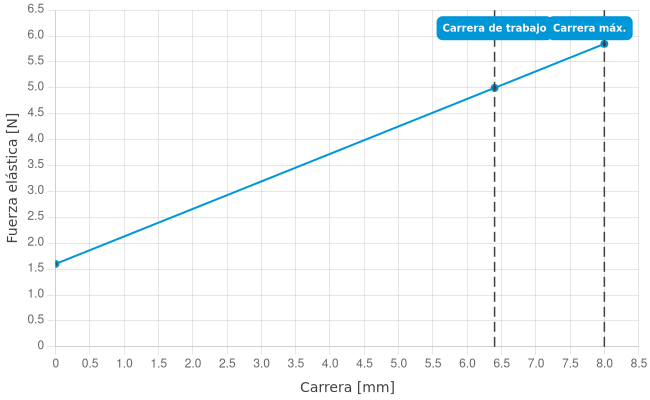 - Fuerza de resorte durante la carrera de trabajo: 5 N