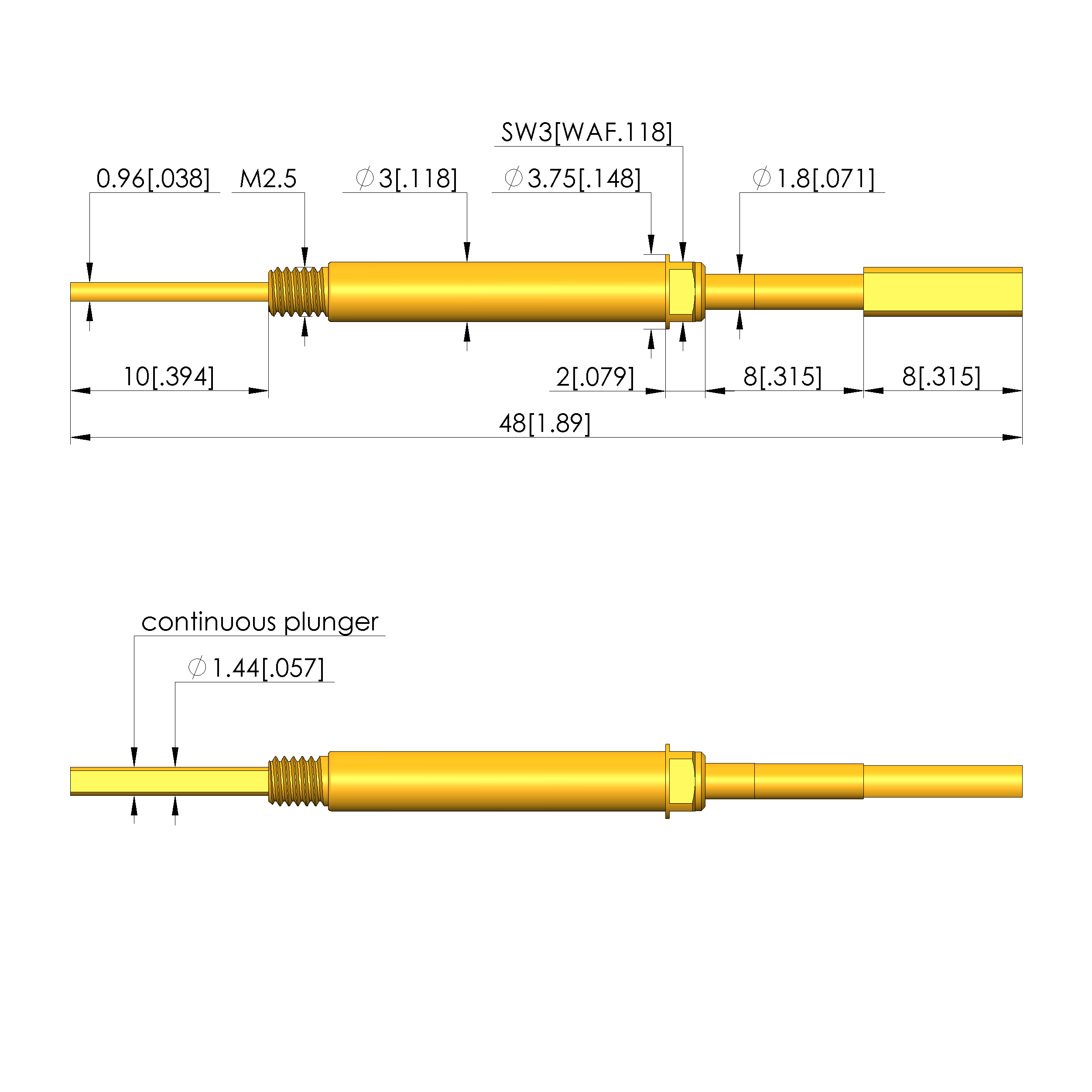 | Pistón continuo: | ø1,44 x 0,95 x 10,0 |