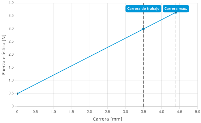 - Fuerza de resorte durante la carrera de trabajo: 3 N