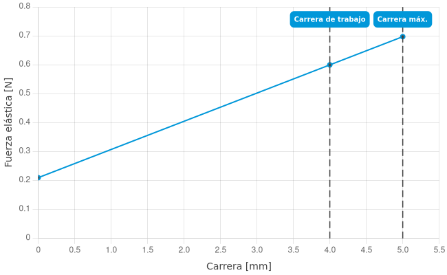 | Fuerza de resorte durante la carrera de trabajo: | 0,6 N |