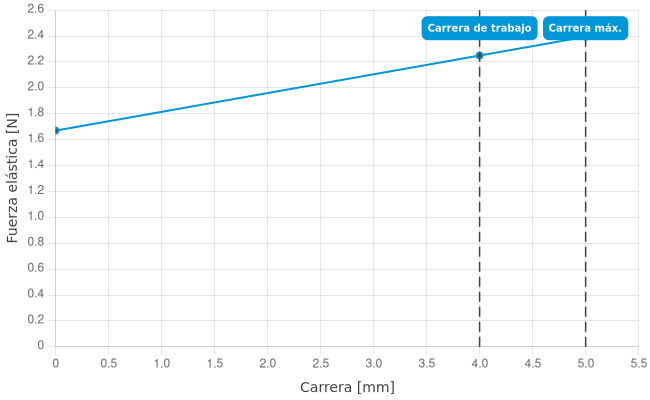 | Fuerza de resorte durante la carrera de trabajo: | 2,25 N |