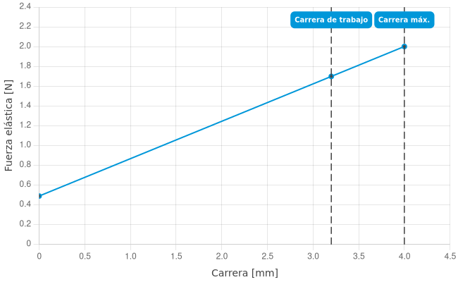 | Fuerza de resorte durante la carrera de trabajo: | 1,7 N |