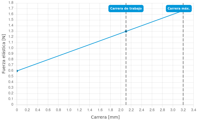 | Fuerza de resorte durante la carrera de trabajo: | 1,3 N |