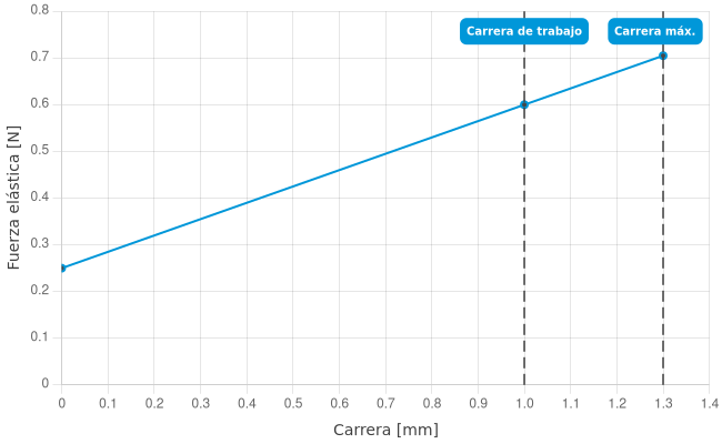 | Fuerza de resorte durante la carrera de trabajo: | 0,6 N |
