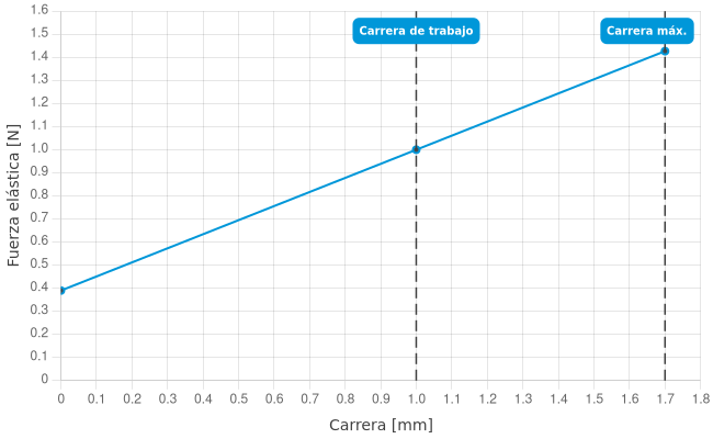 | Fuerza de resorte durante la carrera de trabajo: | 1 N |