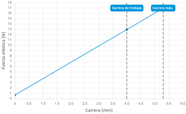 - Fuerza de resorte durante la carrera de trabajo: 13 N