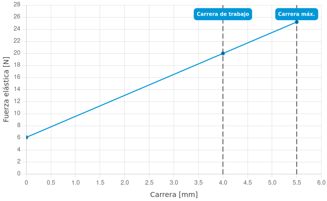 • Fuerza de resorte durante la carrera de trabajo: 20 N