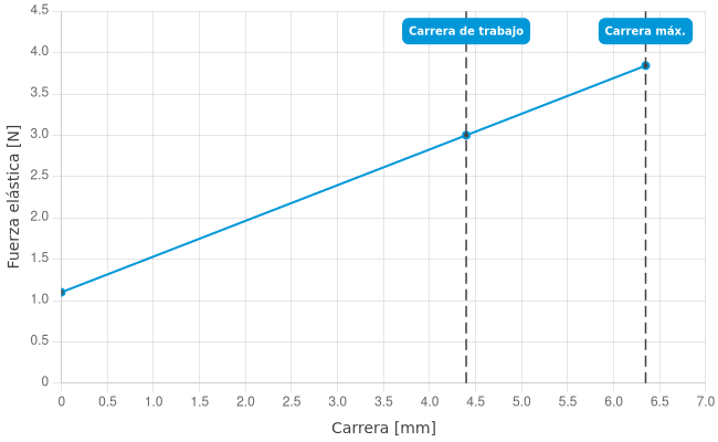 • Fuerza de resorte durante la carrera de trabajo: 3 N