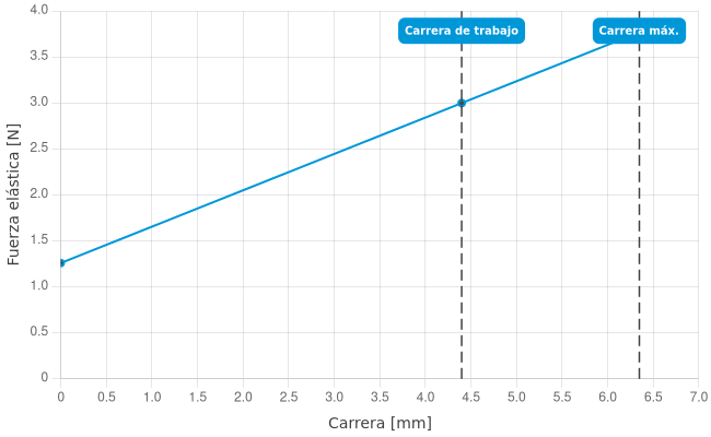 • Fuerza de resorte durante la carrera de trabajo: 3 N