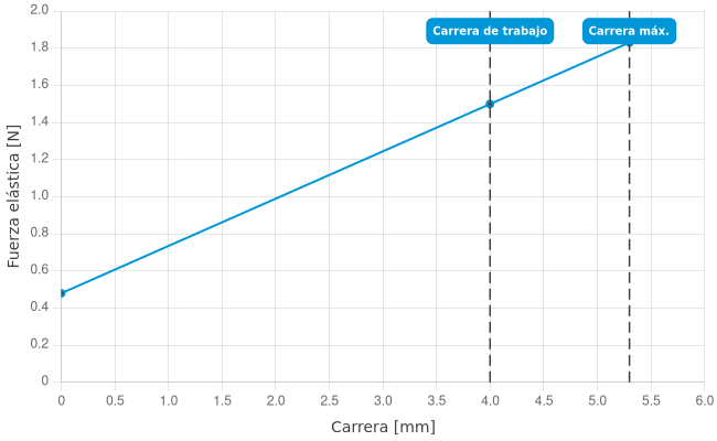 - Fuerza de resorte durante la carrera de trabajo: 1,5 N
